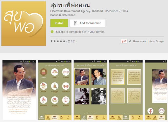 "เนื่องในโอกาสพระราชพิธีมหามงคล เฉลิมพระชนมพรรษา 5 ธันวาคม 2557 นี้ ทาง ICT โดยสำนักงานรัฐบาลอิเล็กทรอนิกส์ (องค์การมหาชน) หรือ EGA ร่วมกับสำนักราชเลขาธิการ ขอพระราชทานพระบรมราชานุญาต อัญเชิญพระราชดำรัสและพระบรมราโชวาทคัดตัดตอน มาพัฒนาในรูปแบบดิจิตอล ให้รองรับอุปกรณ์สื่อสารเคลื่อนที่ ภายใต้ชื่อแอพพลิเคชั่น สุขพอที่พ่อสอน”
