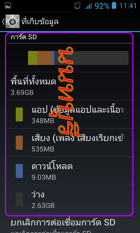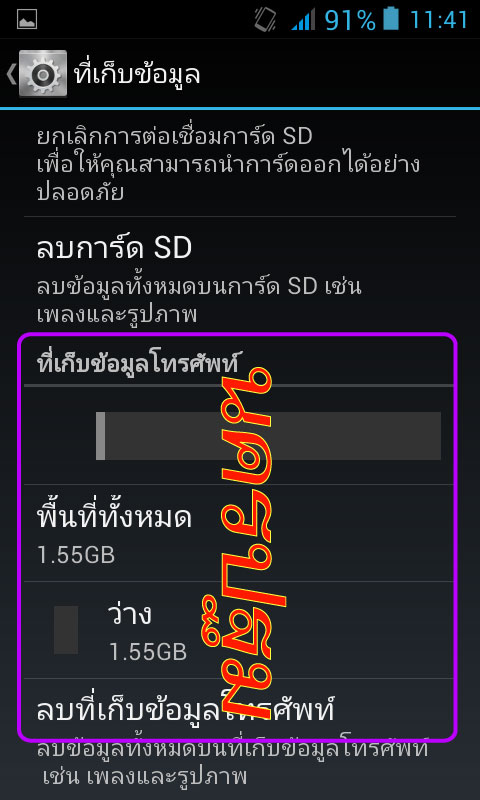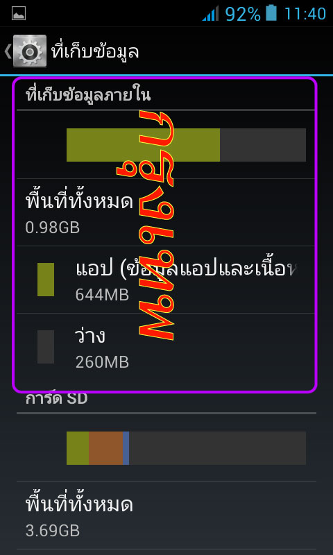 ผมมีปัญหาก็คือ ตำแหน่งเก็บข้อมูลภายในเต็มบ่อย ๆ ส่วนมากจะใช้เก็บแอป