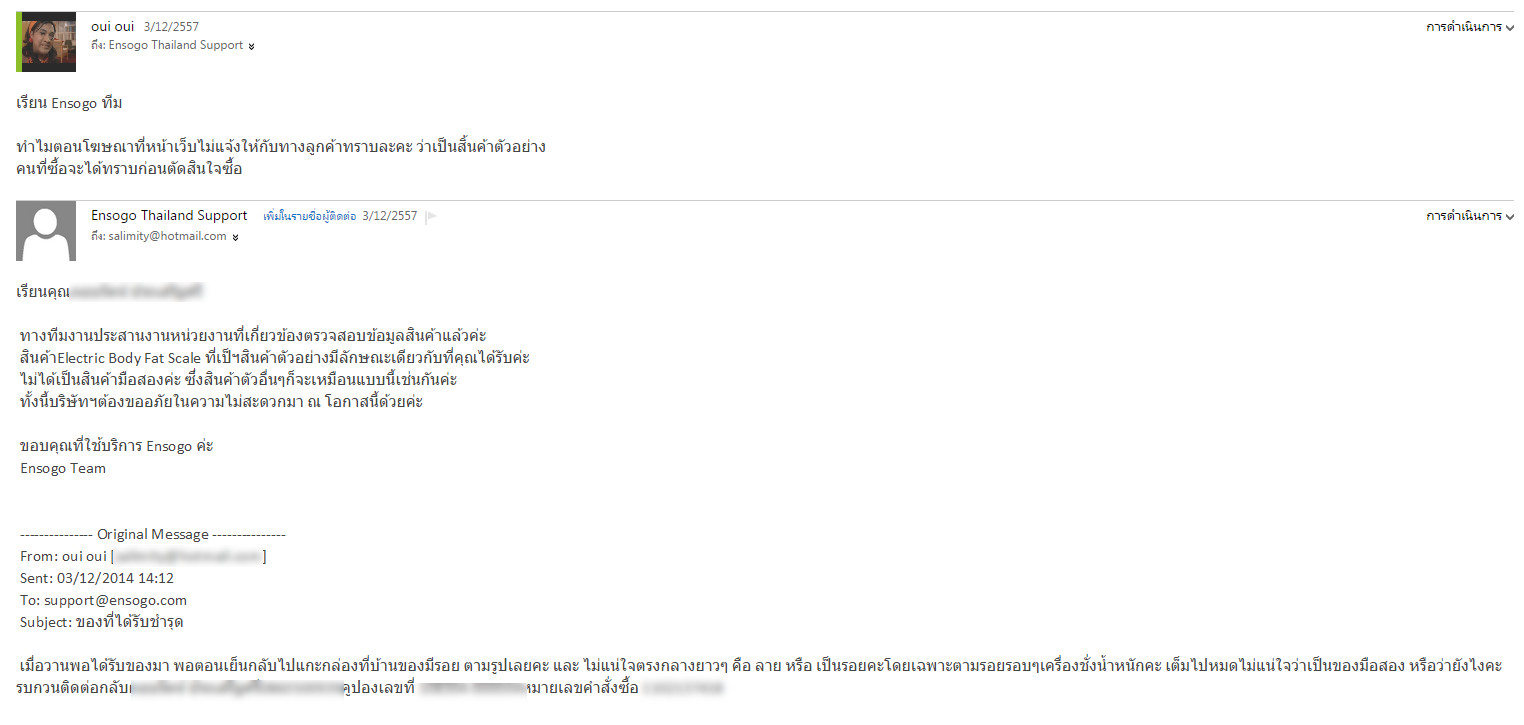 และ นี่คือเมลล์ที่แจ้งไปยัง ensogo คะ