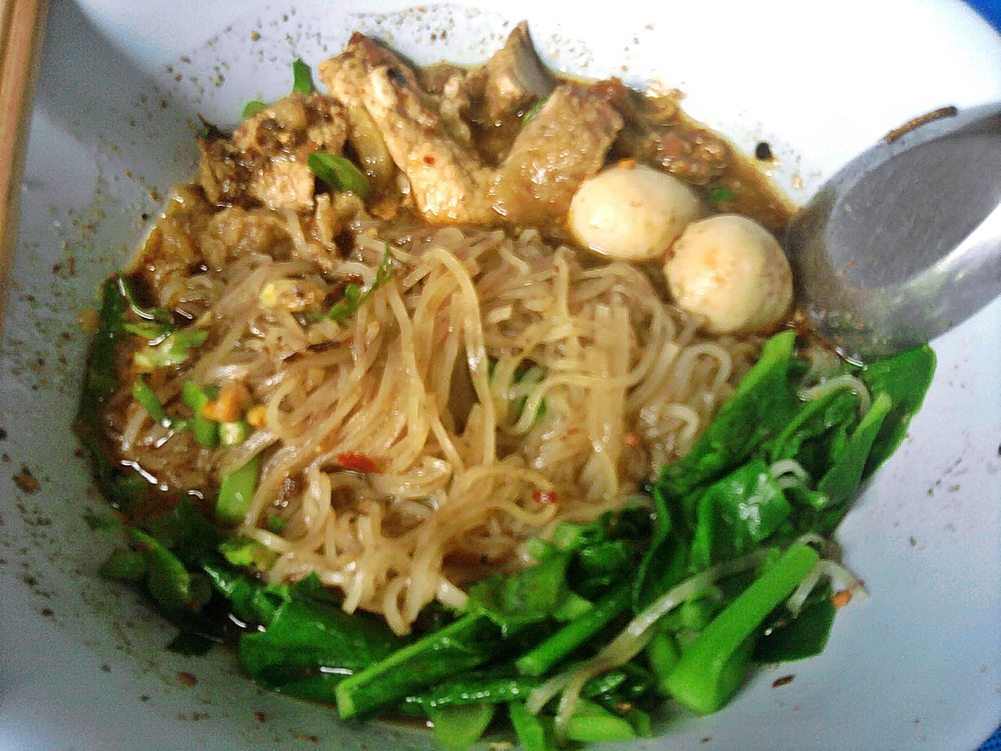 และใส่กากหมูเจียวชิ้นใหญ่ๆ กินไปฟินไปเ พราะร้านส่วนมากใส่แค่กระเทียมเจียวเอง