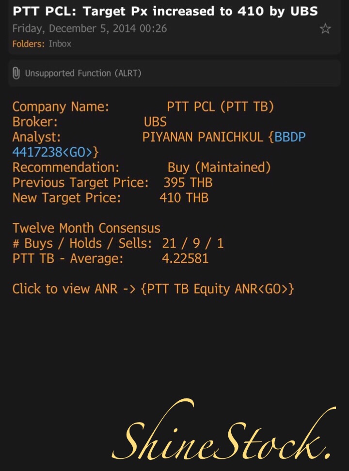 PTTฉลุยย UBSโบรคฝรั่งมองไกล เปลี่ยนเป้าใหม่เป็น 410 บาท (รายละเอียดด้านใน)
