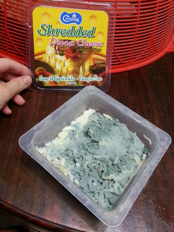 ซื้อชีสพิซซ่ามาค่ะ คือเก็บในตู้เย็นด้วย แต่ราขึ้นเขียว วันหมดอายุก็ยังไม่หมด