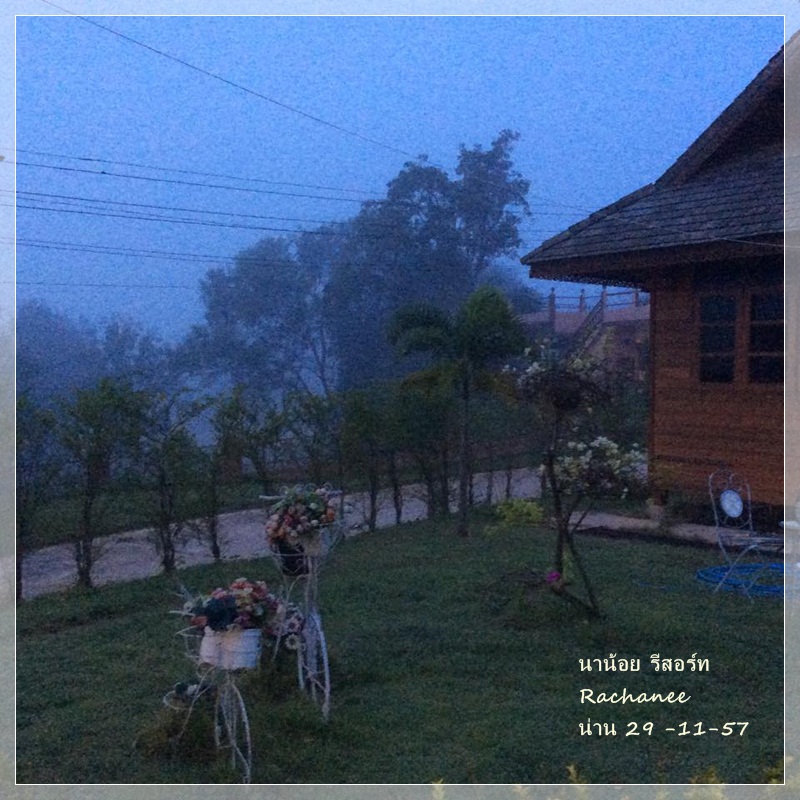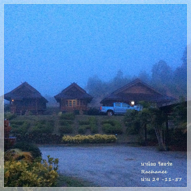 ดาวมากันได้ยังไม่เต็มดีแต่ก็ได้เวลากลับลงมาที่พักด้านล่างเนื่องจากข้างบนเต็มแล้ว ก่อนมาหาข้อมูลดูมีกระทู้แนะนำให้พักที่นาน้อยรีสอร์ท ก็เลยโทรมาจองโชคดีที่ยังว่าง เราได้บ้าน 1 หลัง นอนได้ 5 คน จองให้คนขับ 1 ห้อง ตอนขับกลับมากะจะมาหาข้าวเย็นทานกัน ที่ไหนได้ ร้านปิดหมดแล้วทั้งๆที่ยังไม่สองทุ่มเลย เงียบมากโชคดีมีร้านก๊วยเตี๊ยวข้างรีสอร์ทยังเปิดอยู่ ไม่งั้นคงต้องฝากท้องกับ 7-11 เข้าที่พักก็สลบกันเลย พรุ่งนี้เช้าจะเข้าน่านแล้วไปปัวก่อนจะแวะกลับมาน่าน