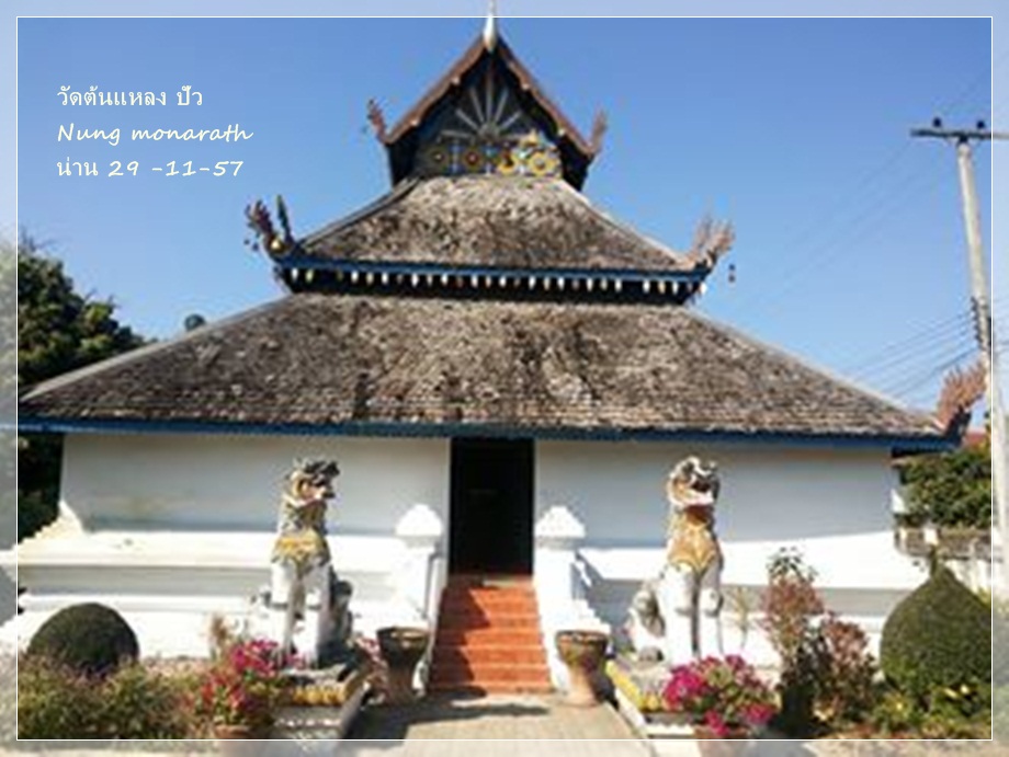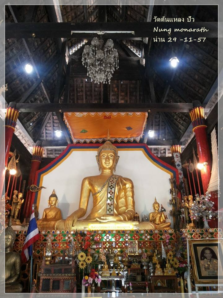 เห็นหมอกแล้วตื่นเต้น เก็บรูปกันสักพัก ก็เข้าน่าน แวะหาอะไรทาง ตามโพสต์ เค้าให้แวะ โจ๊กเมืองสอง ที่ตลาด เอ้าลองแวะดู ก็อร่อยดี จากนั้นก็เข้าปัวจุดหมายคือวัดต้นแหลง ระหว่างทางก็สุมหัวแผนที่เรา กับแผนที่คนขับ คลำทางไปเรื่อยๆ จนเจอวัดแรกของทริปวันที่สอง