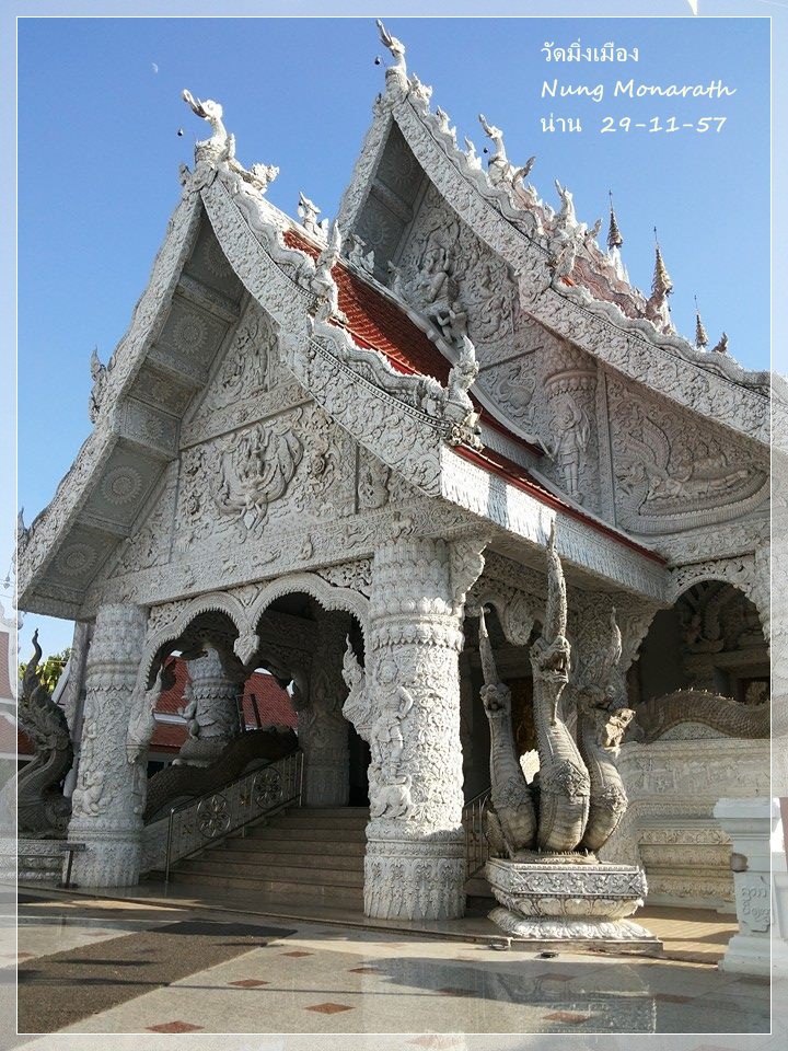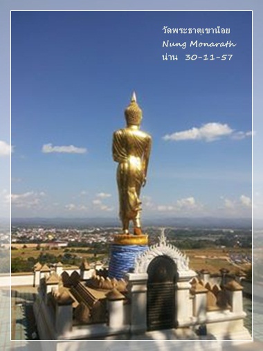 วัดที่สามหลงนิดหน่อย ใช้วิธีทบทวนตอนขามาว่าเห็นป้าย วนสองสามรอบพอเจอป้ายก็สบายล่ะ ทางขึ้นเป็นทางชัน ใช้แรงส่งดีๆ รถกระบะบางคันวิ่งขี้นมาแล้วหยุดจากนั้นก็ค่อยๆไหลลงๆ แต่กลับขึ้นมาได้ใหม่ รถเล็กก็ขึ้นได้ มีทางเดินขึ้นแต่มองลงไปแล้ว นั่งเสียวมาบนรถดีกว่า วัดนี้มาตามรูปจริงๆ รูปที่เอามาลงในกระทู้น่านสวยมากๆ เกือบไม่กล้าโพสต์รูป แต่เอาเถอะ ไหนๆก็ไหนๆแล้ว เห็นวิวเมืองน่านขึ้นมาก็หายเหนื่อย