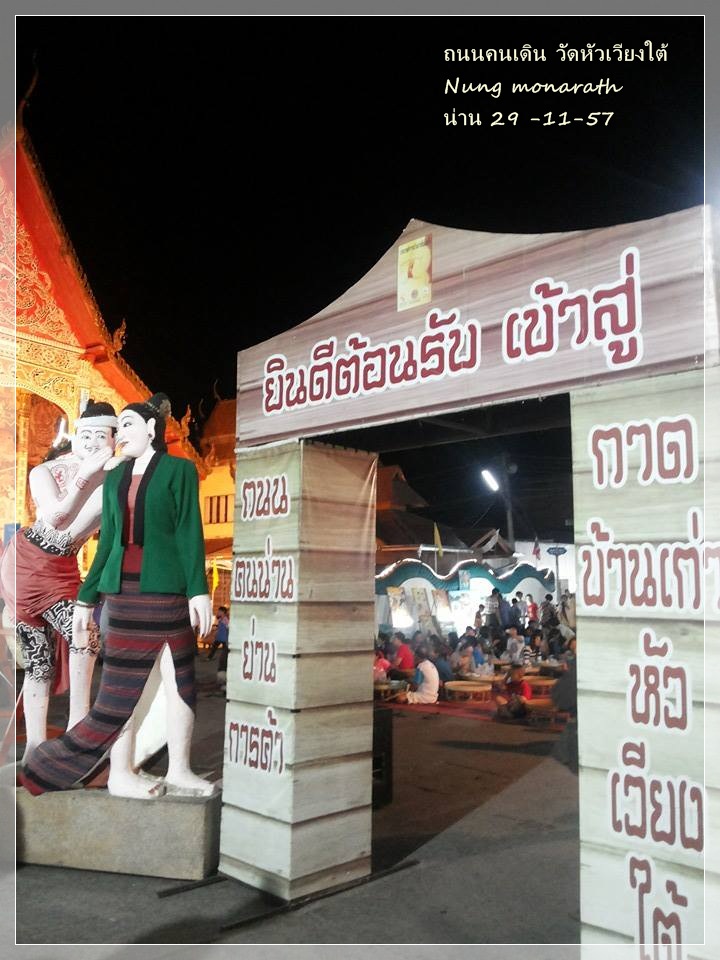เข้าที่พัก คืนนี้เราพักที่น่านล้านนา คุณอาร์ตคนดูแลถามว่าไปเดินถนนคนเดินหรือยัง รีบไปนะ สามทุ่มจะปิดแล้ว พวกเราก็รีบซิ ถนนคนเดินจัดทุกวันเสาร์ที่หน้าวัดหัวเวียงใต้ มีโอกาสลองแวะเดินดูกันนะ