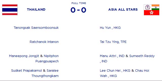 โปรแกรมการแข่งขันแบตมินตัน Axiata Cup 2014 : รอบรองชนะเลิศ 6 ธ.ค.57 [Thailand vs Asia All Stars] (14.00 น./18.00 น.)