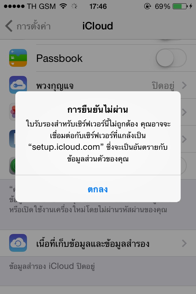 ผมใช้ไวฟายบ้านเล่นไม่ได้เลยครับ โทรศัพท์เครื่องอื่นเล่นได้ตามปกติครับ คอมก็เล่นได้ แต่ไอโฟนผม เล่นอะไรที่เกี่ยวกับเน็ตไม่ได้เลยครับ ยกเว้นแอปไลน์เล่นได้ปกติ ผมจะลองกู้ข้อมูลที่สำรองไว้เมื่อวานมันบังคับปิดค้นหาไอโฟนก่อน ก็ปิดไม่ได้ครับ มันขึ้นข้อความตามรูปเลยครับ รูปที่ 4