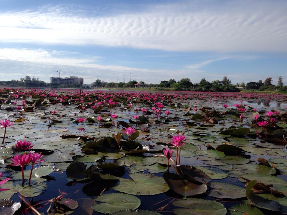 เพิ่งได้กลับบ้านวันพ่อที่ผ่านมา บัวแดง ริมสระพังทอง หนองหาร สกลนคร เริ่มบานส่ง