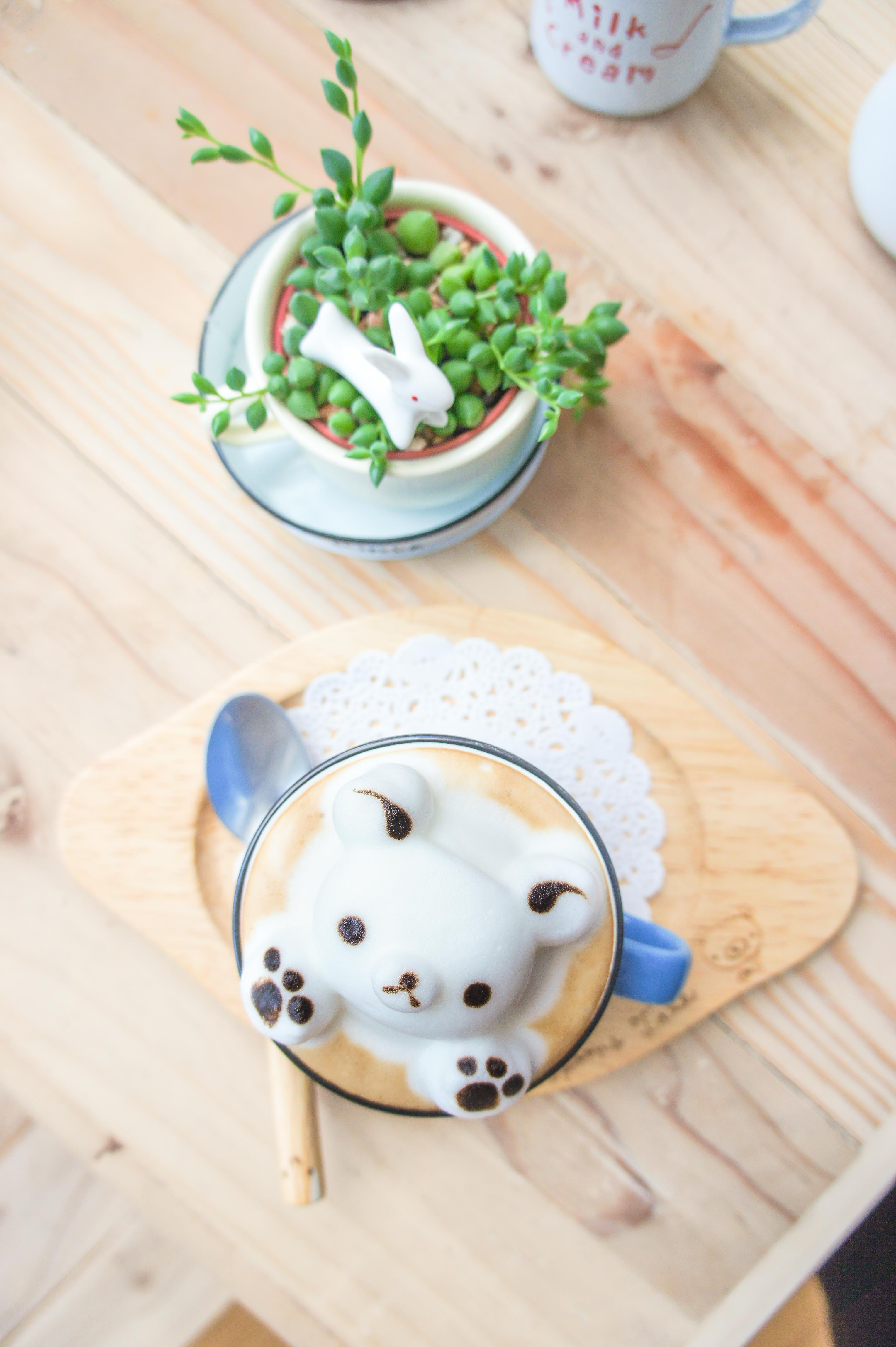 จริงๆแล้ว ตอนแรก เราไปขอลายหมีริละคุมะของญี่ปุ่นมาค่ะ แต่ทางร้านเค้าบอกว่า ลูกค้าเลือกลายไม่ได้ แต่ก็ไม่เป็นไรเพราะว่า เจ้ากาแฟหมีน้อยที่เค้าเสริฟมา ก็หน้าาตาแอบใกล้เคียงริละคุมะอยู่เหมือนกันล่ะเนอะๆ