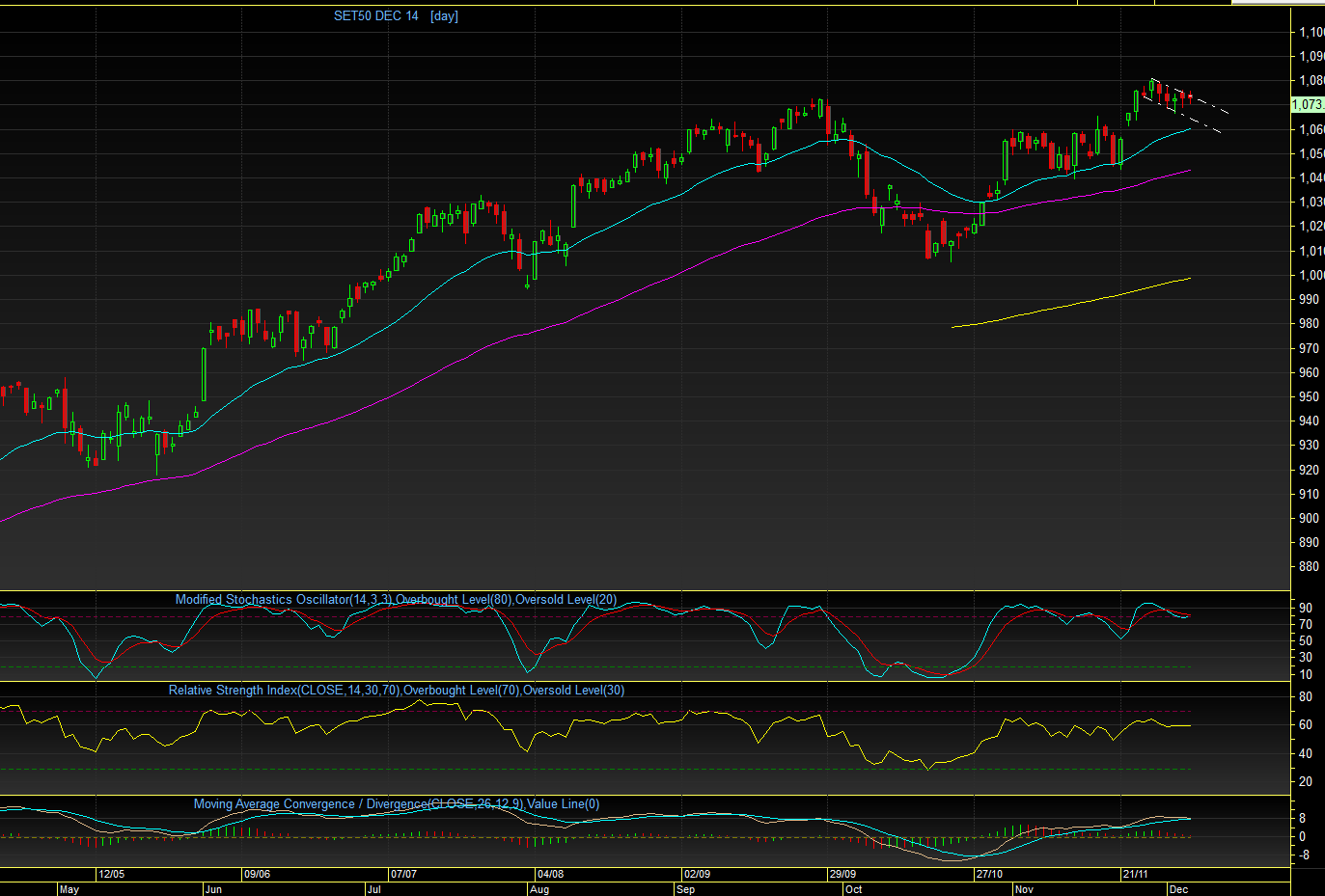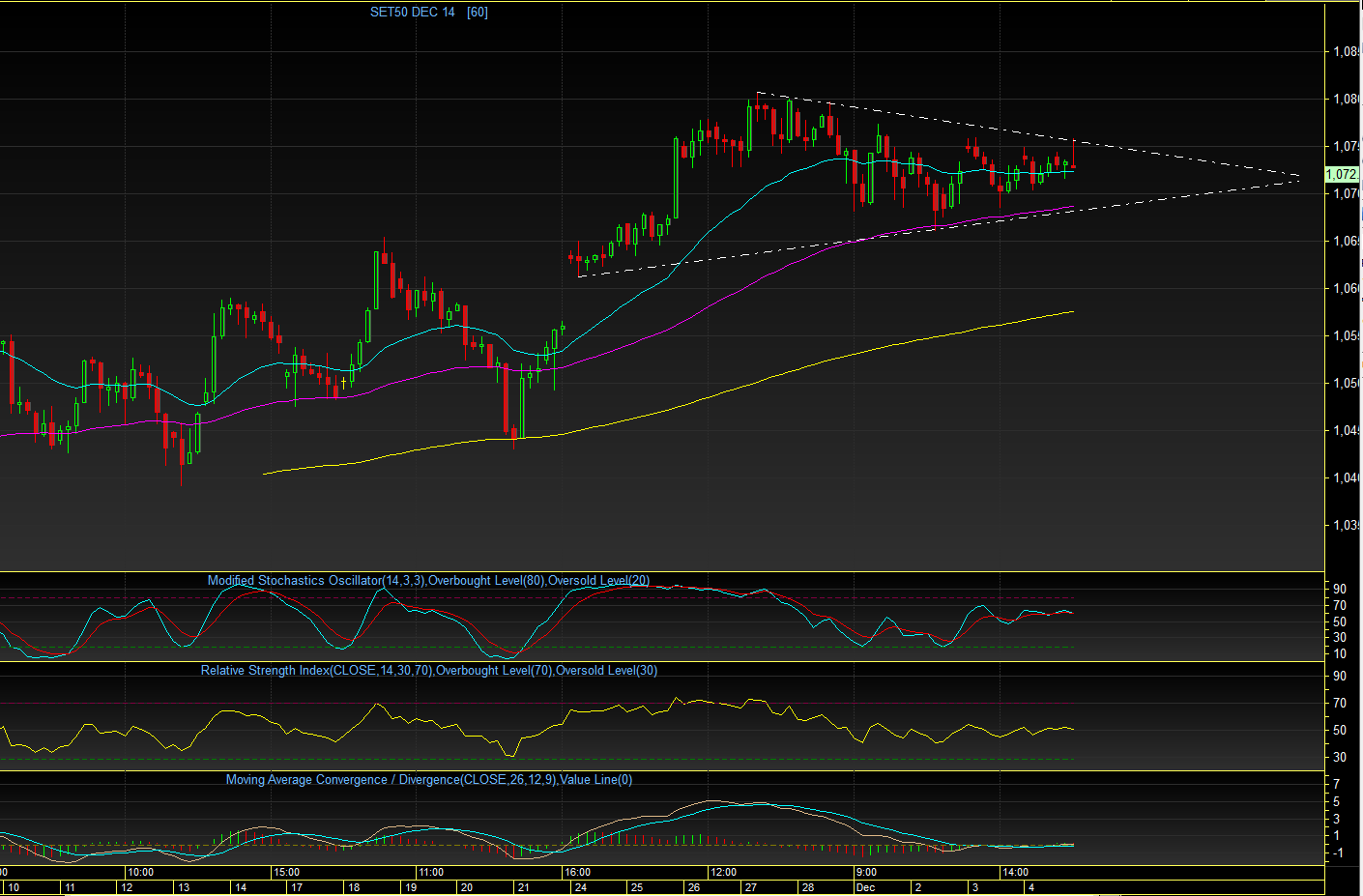 S50Z14 TF Day : ตลอดทั้งวันพฤหัสที่ผ่านมา ดัชนีแกว่งตัวในกรอบแคบมากๆ (1070 - 1075) จุด ซึ่งการเรียงตัว