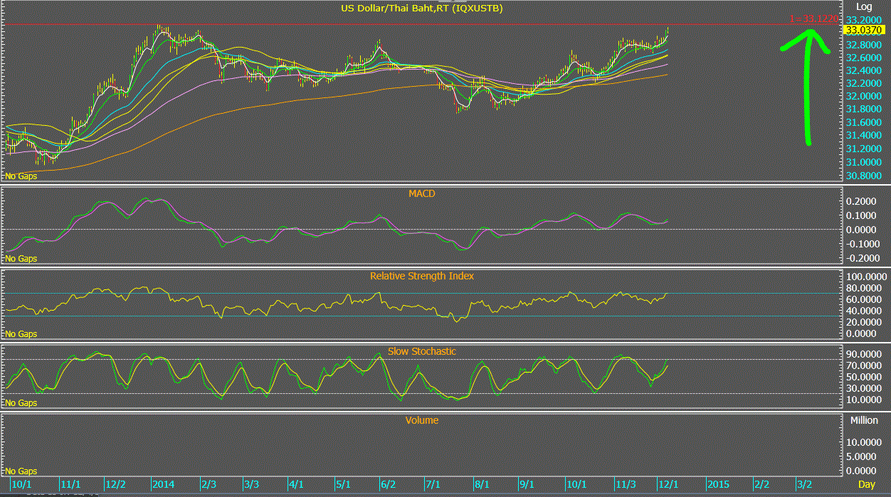 ถ้าหลุด 33.12 บาท ได้เห็นบาทอ่อนไปที่ 35 - 36 บาทแน่เลย > <"