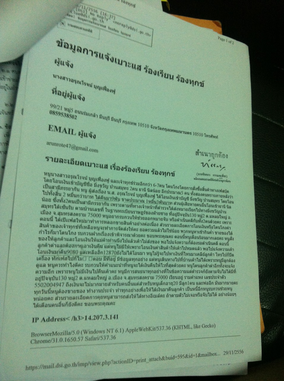 พอได้ที่อยู่มา ดำเนินเรื่องส่งเอกสาร ทุกอย่างที่ต้องใช้ไป ไอซีที ค่ะ