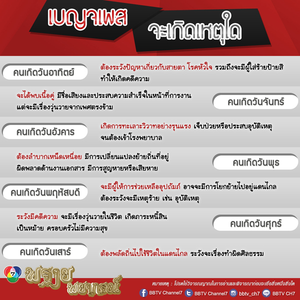 เรื่องนี้หลายคนกลัวน่ะ จากที่ฟังมาบางคนบอกว่า พอย่างเข้าเบญจเพสจะเกิดได้ทั้งเรื่องดี และเรื่องไม่ดี แต่ส่วนมากชอบได้ยินแต่เรื่องไม่ดี บางคนก็ดีเวอร์เลย การงาน การเงิน ความรักมาพร้อม เอามาให้อ่านเล่นๆ จ้า ตามวันเกิดเนอะ