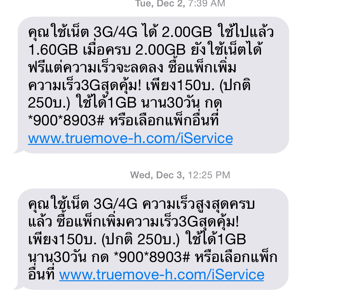 Gb มีข้อความจากทรูส่งมาว่าผมจะใช้งานครบ 2 Gb