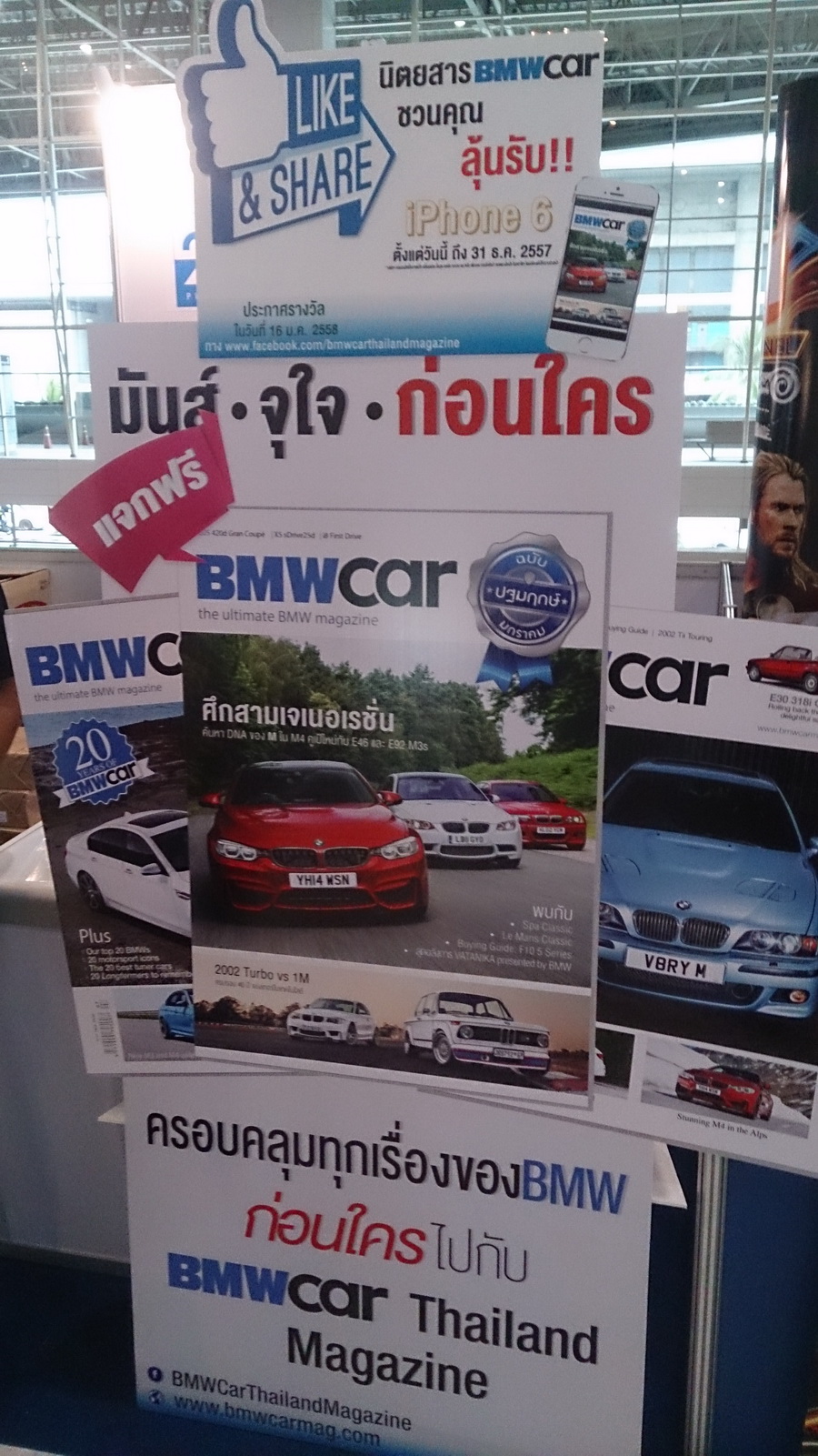 ก็ไม่คิดไรมากครับเป็นประจำของทุกปีจัดเมืองทองเมื่อไรรถจะติดมากเป็นพิเศษ พอหาที่จอดรถได้เสร็จปั๊บก็เดินเข้าหน้างานแต่พอดีไปเดินผ่านบูธหนึ่งครับอยู่ด้านหน้าทางเข้า แม่เจ้า!!มันเป็นบูธหนังสือที่ผมเล็งอยู่ก็เลยแวะซะหน่อย เข้าไปตอนแรกนึกว่าขายครับที่ไหนได้แจกฟรี!! (เฉพาะเล่มนี้เล่มเดียวครับ) ส่วนตัวผมนั่นตามหนังสือแม็กกาซีนที่มีเรื่องราวของ BMW มาโดยตลอดก็อย่างว่าล่ะครับคนมันชอบ แล้วผมก็มีเล่มที่เป็นภาษาอังกฤษเก็บไว้ ที่อยากจะบอกคือเพิ่งซื้อมาเอง วันนี้มีแปลไทยแล้วอ่ะครับ