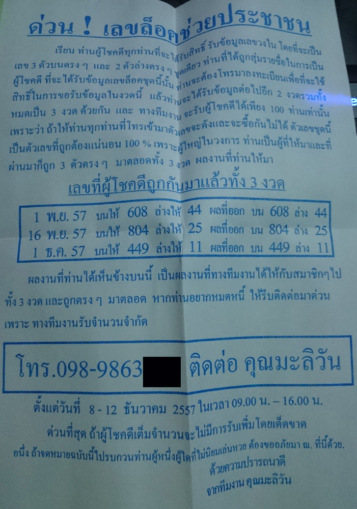 มีจดหมายเลขล๊อคส่งมาถึงบ้าน...
