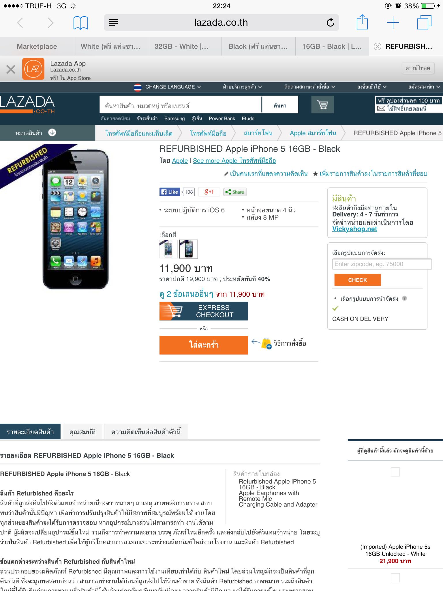 สั่งIP5เครื่องรีเฟอร์บิทจากLazadaแล้ว