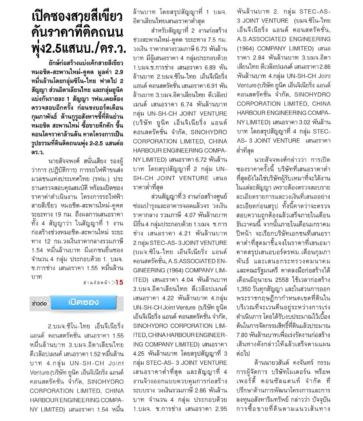 เปิดซองสายสีเขียว ดันราคาที่ติดถนน พุ่ง2.5แสนบ./ตร.ว.