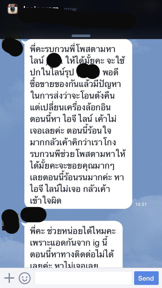 -กี้สสสส นี่ตื่นแต้นแล้ว เวรกรรมแล้วทำไงดี โดนโกงแน่ๆ เลยไล่หาวิธีต่างๆ ต้องแจ้งความ ซึ่งเอาตรงๆแจ้งความหลายขั้นตอนทำไงดีๆๆๆ หาในกุเกิ้ลก่อนเลยค่ะว่าโดนโกงทำไงดี เจอกระทู้นี้ http://pantip.com/topic/32919219 ได้คำแนะนำดีๆเยอะค่ะ จากนั้น ลองไล่หา นามสกุล พยายามมาก สุดท้ายดูจังหวัดที่น้องอยู่ เสร์ทๆๆ มีกรุ้ป จ.นี้ในเฟส ขอ join กรุ๊ปไป ระหว่างนั้นค่ะ นึกได้เราแคปหน้าตอนคุยกันไว้ คือรูปพวกนี้จะไม่เหมือนรูปถ่ายโปรไฟล์เวอร์ๆของเราอ่ะนึกออกกันใช่ไหมคะ เราก็ไปไล่เม้นในร้านเดิมใน ig ว่าโดนคนนี้โกงชื่อไลน์เดิม ป ปลา มีคนโดนคนเดียวกันไหม กด ig เรามาดูรุได้ค่ะ เราก็อัพรูปคนนี้ใน ig เราเผื่อใครกดเข้ามาก็จะเจอเนาะว่าหน้าคนนี้ แล้วก็เล่าเรื่องราวร้อนๆลงเฟสบุ๊กเรา และรวมถึงแฟนเพจเราด้วย อารมณ์ว่าช่องทางไหนก็อัพกระจาย ก็ไม่เคยโดนโกงอ่ะฮือ (แฟนเพจเราคนไม่เยอะปกติเราชอบทำhow toสอนแต่งหน้าเคยลงในพันทิปด้วยแหละ) จากนั้นก็ไล่เสิร์ทนามสกุลไทยอังกฤษทุกแนวใครอยู่ จ.นี้ มีนามสกุลนี้ แชท อินบอกไปหมดเลย ส่วนเฟสที่อ้างว่าไปส่งของแล้วพิมแทคที่แคปมาแชทไปไม่ตอบสงสัยเฟสปลอมสร้างมาตอบโต้กับตัวเองคะ