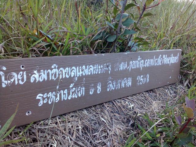 พอดีว่าผมไป ภูสอยดาว มาครับเมื่ออาทิตย์ที่แล้วครับ จะเดินไปจุดชมวิวพระอาทิตย์อัสดง เจอป้ายอะไรไม่รู้คว่ำอยู่ตรงพงหญ้า เลยหยิบมาดู อ้าวเป็นของ ห้อง บลูแพลนเน็ต นี่ครับ แต่ไม่ทราบว่าที่แขวนไม่รู้ไปไหนแล้ว เลยจับตั้งวางไว้ให้ดูดีกว่าเดิมครับ ไม่ทราบว่าสมาชิกท่านใดเคยไปตอนปักป้ายกันหรือเปล่าครับ เค้าไปทำอะไรกันครับ ถึงมีป้ายของห้องนี้ครับ พอดีผมสมัครสมาชิกทีหลังป้ายครับ เลยไม่รู้รายละเอียดป้ายเท่าไรนัก