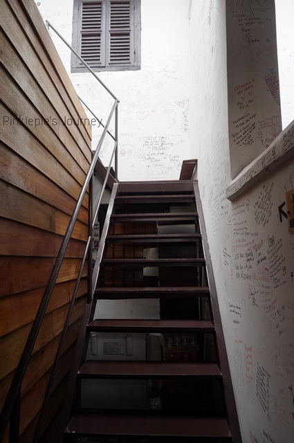 ทางเดินขึ้นชั้น 2 กำแพงให้คนที่มาพักละเลงได้ตามใจชอบ