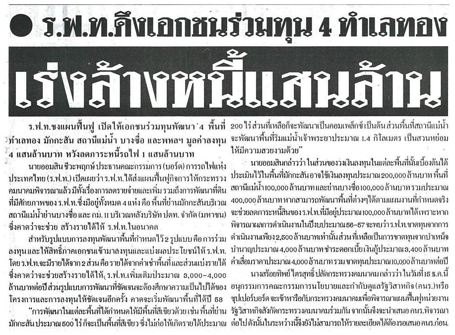 รฟท.ผุดคอมเพล็กซ์6.5หมื่นล.-พหลฯทำเลทอง ให้เอกชนลงทุนแลกสัมปทาน30ปี ข่าวสด (กรอบบ่าย) ฉบับวันที่ 30 กันยายน พ.ศ. 2557