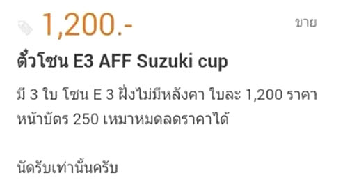 ต้นเหตุตั๋วหมดไว? ว่อนเน็ต 250 ขาย1,200 ตั๋วชิงซูซูกิคัพ 2014