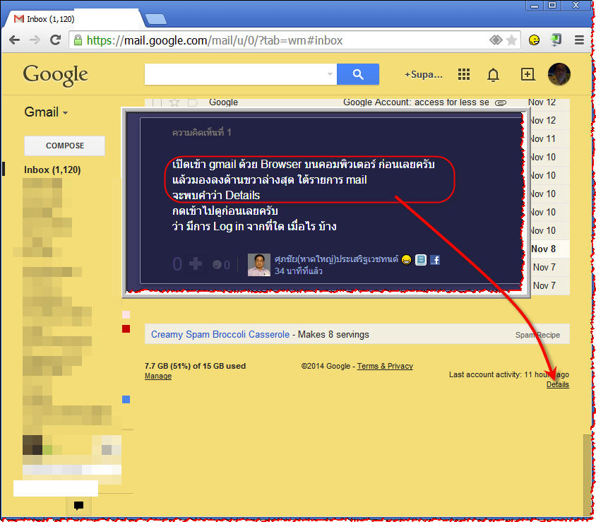 2. Login email จากคอมพิวเตอร์ จากที่บ้าน ซึ่งไม่เคยนำ computer laptop ไปใช้ในที่สาธารณะเลย คือถ้าคนที่บ้านทำก็คงเป็นสามี (บ้านอยู่กัน2คน) แต่ประเด็นสามีตัดออกไปได้ เพราะเค้าไม่มีเหตุผลจะทำแบบนั้นแน่นอนค่ะ