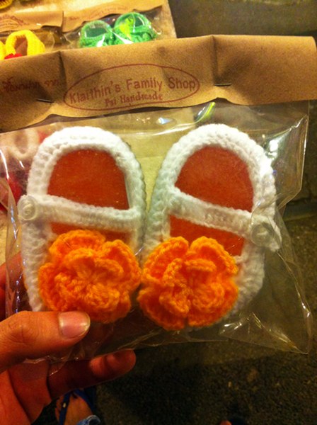 รองเท้าน่ารักดี ว่าจะซื้อไปให้น้องสาวแต่จำขนาดไม่ได้เลยเอาไปทาบหน้าดู คนขายนี่ลั่นเลยครับ ก็เป็นที่วางขาประจำนี่เนอะต้องลองดูถึงจะจำได้ 5555