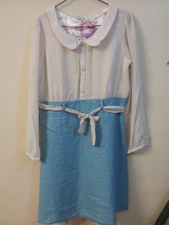 1. เดรสตัดต่อสวยมาก คอนเฟิม ผ้าชีฟองด้านบน ด้านล่างผ้าไหมสีฟ้าน้ำทะเล อก34 เอว 34 สะโพก 40 ยาว 36 ราคา 280
