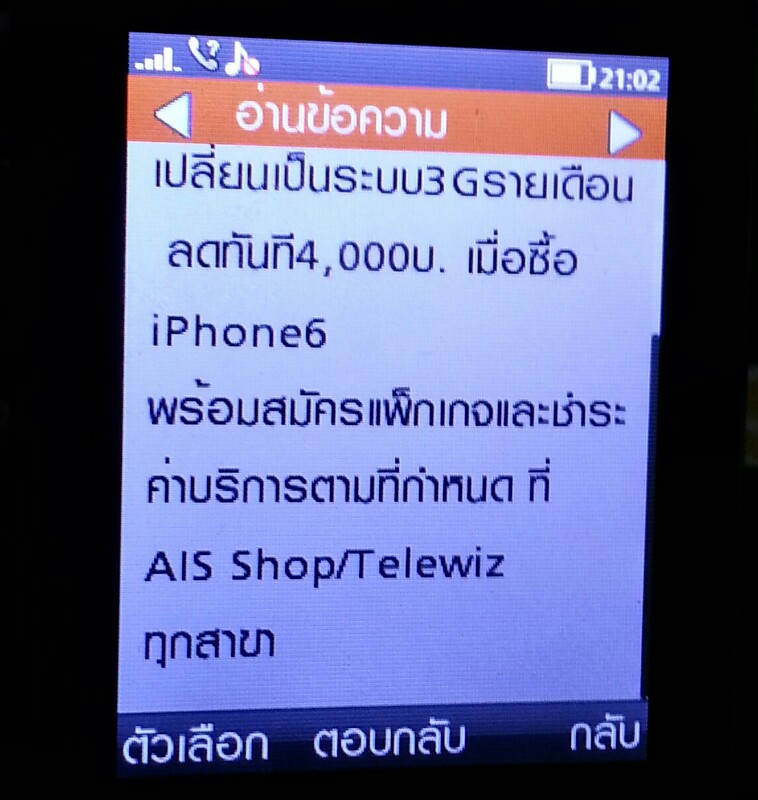 ได้รับข้อความจาก ais มีส่วนลด 4,000 เมื่อซื้อ iphone 6