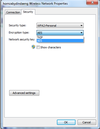 อย่างเมื่อวาน กับวันนี้ เราลองปิดเปิดตัวปล่อยสัญญานก็แล้ว รีสตาร์ทโน้ตบุ๊คก็แล้ว ก็ไม่หายค่ะ ทำมากกว่า3ครั้งนะคะ แต่ก็เหมือนเดิม ลองremoveชื่อwifiออกดูตามวิธีที่คนอื่นๆแนะนำมาก็ไม่หาย แล้วก็ได้แอดชื่อwifiกลับเข้าไปใหม่ก็ไม่หายค่ะ แต่ตรงนี้ไม่รู้ว่าเลือกผิดมั้ย รบกวนช่วยดูตามรูปนี้เลยค่ะ ปัจจุบัน เราเลือก AES ตามที่มันขึ้นให้อัตโนมัติ
