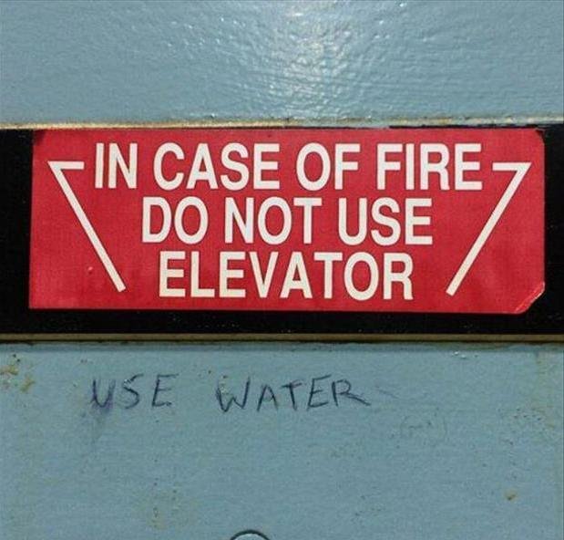 เวลาไฟไหม้อย่าใช้ ลิฟ นะจ๊ะ ....... ให้ใช้น้ำแทน (ก็ถูกของพี่แกนะ 555+)