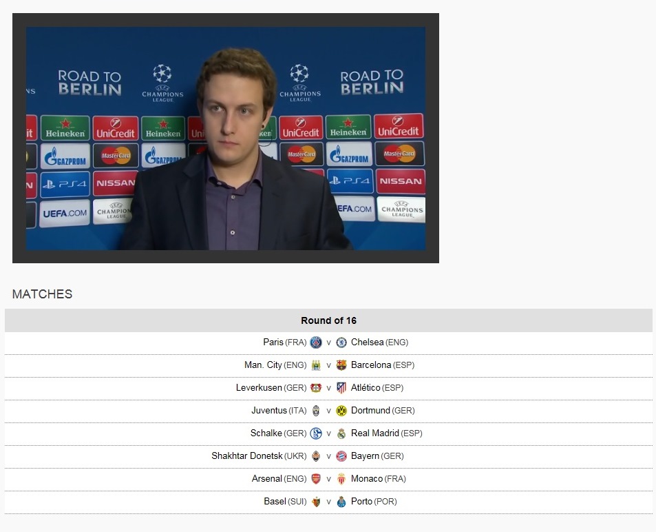คือตอนดูตั้งแต่คู่แรก PSG vs Chelsea ในวีดีโอ ยังไม่ประกาศชื่อทีมเลย แต่รายละเอียดข้างล่างมันขึ้นมาก่อนแล้วว่า PSG vs Chelsea และขึ้นชื่อ Man City มารอไว้แถวสองก่อนเลย