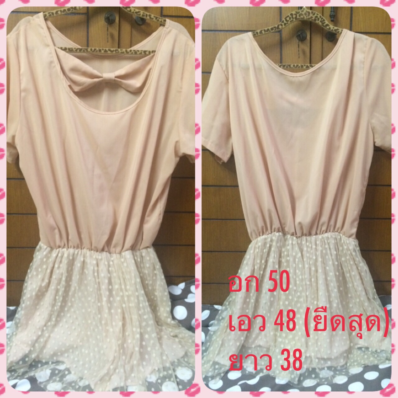 1. เดรสสีเนื้อ/โอลโรส น่ารักมาก ๆ ข้างหลังมีโบว์ด้วย ราคา 150 บาท