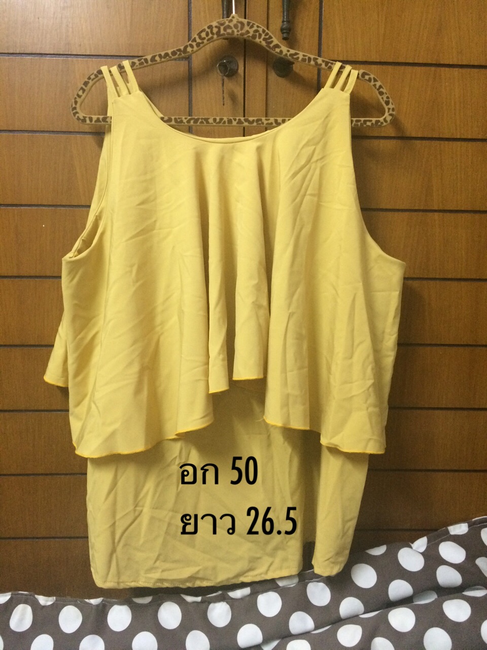 14. เสื้อผ้านิ่ม สีเหลือง เคยใส่เที่ยว 1 ครั้ง ใส่ทำงาน (ใส่เสื้อคลุมทับ) 1 ครั้ง 120 บาท