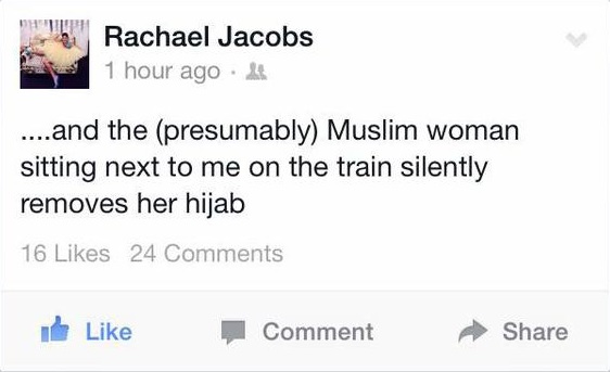 1. ... หญิงมุสลิมที่นั่งข้างฉันบนรถไฟถอด hijab ของเธอออกอย่างเงียบๆ