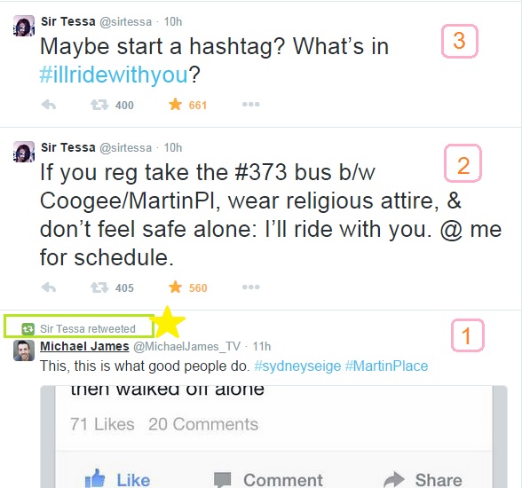 1. http://www.smh.com.au/nsw/martin-place-siege-illridewithyou-hashtag-goes-viral-20141215-127rm1.html