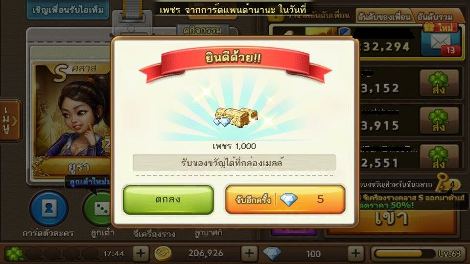 เราได้เพชร 1,000 เม็ดจาก event ทำให้ต้องกลับมาเล่นเกมเศรษฐีอีกครั้งหลังจากที่เลิกเล่นไประยะหนึ่งแล้ว