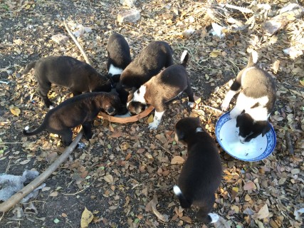สวัสดีค่ะ ตอนนี้ในหมู่บ้านมีลูกหมาเพิ่งเกิดหลายตัวเลยค่ะ พ่อกับแม่มันเป็นหมาที่วิ่งไปวิ่งมาในหมู่บ้านคนในหมู่บ้านก็ช่วยๆกันเอาข้าวมาให้ช่วยกันดูค่ะ