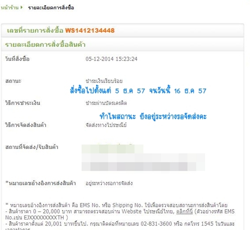 สั่งซื้อไปตั้งแต่ วันที่ 5 ธ.ค 57 จนมาถึงวันนี้ 16 ธ.ค 57 ยังคงสถานะรอการส่ง อยู่แบบนี้