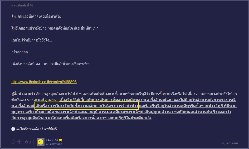 งั้น ขอถามหน่อย ว่า "ความเสียหาย" ในโครงการจำนำข้าวน่ะ คืออะไร ?