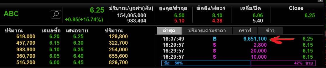 เขาซื้อไป 6,651,100 หุ้น ในราคา 6.25 เป็นเงิน 41,569,375 บาท 41 ล้านกว่าๆ