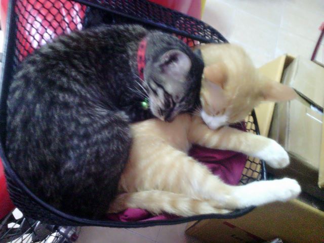 น้องแมวสองตัวที่บ้าน เวลาตื่นนี่ฟัดกันตลอด แต่พอถึงเวลานอนก็กอดกันกลม ทุกคืน อิอิ