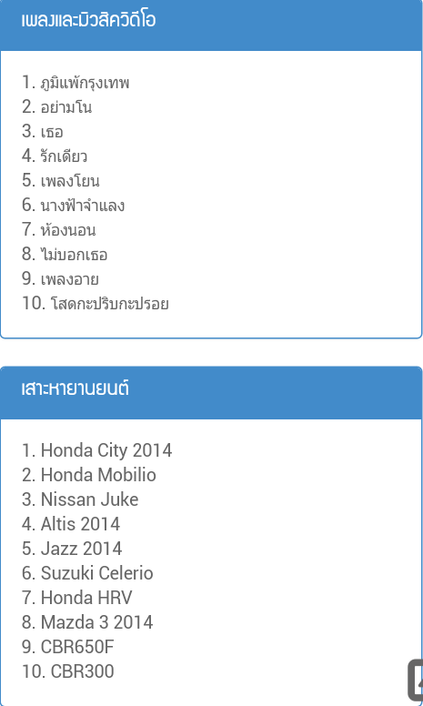 อันดับ 10 คำค้นหาที่มีผู้คนหาสูงที่สุดของประเทศไทยในแต่ละหมวดหมู่ ปี 2557.... อ่านต่อได้ที่ :