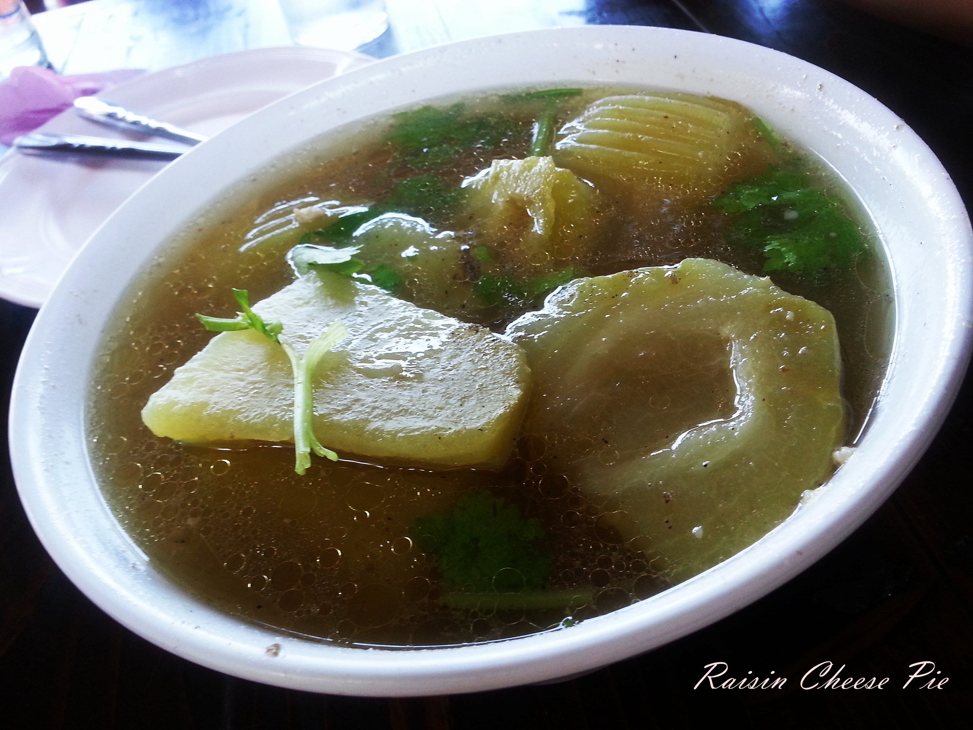 เมนูที่ 3 คือเมนู ต้มจืดมะระหวานใส่กระดูกหมู ที่น้ำต้มกลมกล่อมมากๆ (อยากจจะบอกว่านี่เป็นครั้งแรกที่รู้จัก และได้ลิ้มรสมะระหวาน ทำให้ติดใจจนต้องหาซื้อติดมือกลับมาทำทานต่อเองอีกที่ กทม ด้วย อิอิ)