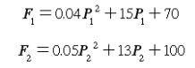 โรงจักรไฟฟ้าแห่งหนึ่งมีเครื่องจักรขนาด 600 kW 2 เครื่อง โดยมีค่าใช้จ่ายในการผลิตกระแสไฟฟ้าเป็นดังสมการด้านล่าง ถ้าใช้โหลดขนาด 920 kW ถามว่าต้องให้เครื่องไหนจ่ายโหลดเท่าไรจึงจะประหยัดค่าใช้จา่ยที่สุด