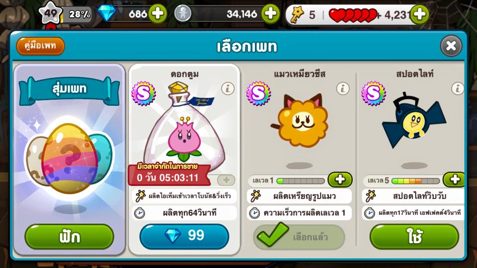 ตอนนี้มีเพชร 151 - มีคุกกี้เชียร์ลีดเดอร์ คุกกี้ฮีโร่ คุกกี้ซอมบี้แล้ว - มีเพทดอกตูมอยู่