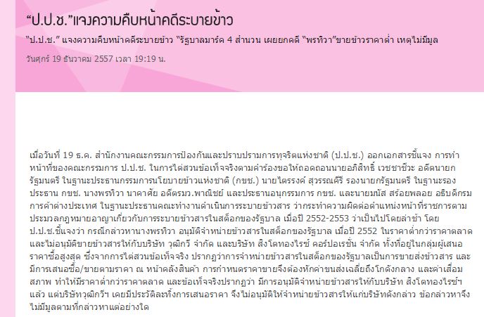ป.ป.ช.”แจงความคืบหน้าคดีระบายข้าว ระบายข้าวในทางลับได้ ไม่ต้องเปิดเผยราคา อ้าวววว แล้วทีนายกปูจะให้เปิดเผย
